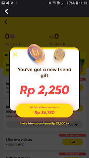 Anda akan mendapatkan pesan You’ve Got a New Friend Gift dengan besaran rupiah, close saja,